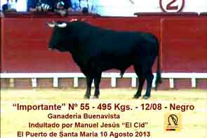 Al margen de lo cuantitativo, el momento álgido del verano taurino portuense se vivió la tarde del 10 de agosto, cuando un inspirado Cid supo estar a la altura de la encendida raza, prontitud y boyantía de “Importante”, bravo ejemplar del hierro de Buenavista que resultaría indultado. Antes de tan singular episodio, El Cid ya había destacado por la firmeza y decisión demostradas ante las dificultades planteadas por su primer enemigo. Porque, salvo el indulto reseñado, la tónica del encierro de la vacada sevillana fue la brusquedad y el descastamiento.