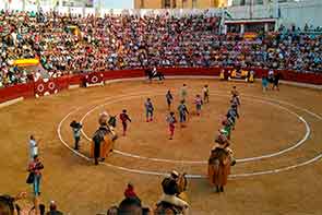 En la jornada del Carmen una novillada en Clase Práctica empujada por el Director de la Asociación Cultural Taurina “Rafael Ortega”, el maestro Antonio Pérez Marín, con cuatro jóvenes isleños: Jesús Rivero, arte y saber, dos orejas; Daniel Tejada, sobrio y dominante, dos orejas; Fátima Ruiz, clase y torería, oreja; y Francisco Delgado, juventud y frescura, dos orejas (el rabo se lo regaló algún subalterno).