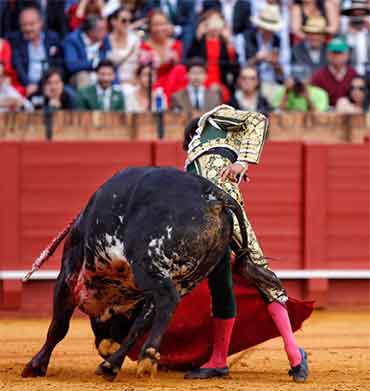 05 Mayo 2017Sevilla. Cinco toros de Victoriano del Río y un voluminoso sobrero de Toros de Cortés lidiado en tercer lugar que sustituyó a otro de su mismo hierro devuelto por flojo. Los titulares lucieron buena y fina presencia, aunque con desigualdad de volúmenes, y mansearon en distinto grado, pues se rajaron descaradamente o desarrollaron genio, temperamento y complicaciones. La excepción fue el cuarto, bravo y con entrega en el último tercio, premiado merecidamente con la vuelta al ruedo en el arrastre.