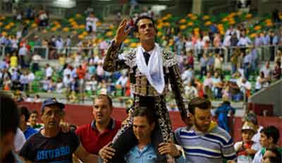En el sexto salió a por todas el burgalés. Se fue a portagayola para continuar toreando de rodillas a la verónica. Muleta en mano fue todo entrega Morenito, que se vació por completo para, tras una buena estocada, lograr la oreja que le hacía falta para la salida a hombros. EFE