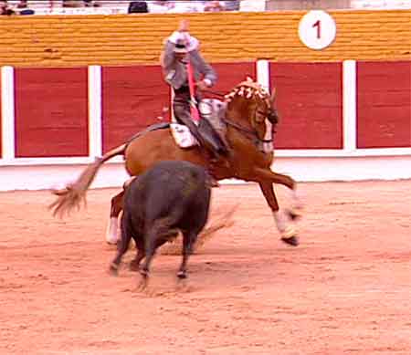 Qué pedazo de caballo es este "Fino", qué torería y qué manera de atacar de frente, alternando banderillas de poder a poder con otras dejándoselo venir de lejos y quebrando en un palmo de terreno. Con "Importante" -hijo del famoso Nazarí- mantuvo el diapasón de la faena con piruetas y otros alardes muy a modo. Le volvió a faltar acierto con los aceros definitivos, pero así y todo cortó una oreja.