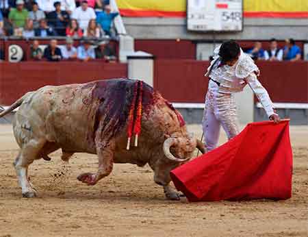 17 Mayo 2018Madrid. Seis toros de Juan Pedro Domecq (el 6º con el hierro de Parladé), cuatro de ellos cinqueños, muy armados y de excesivo volumen en su mayoría, frente a alguno más armónico y bajo de agujas. En conjunto, corrida medida de raza y fuerzas, salvo el sexto, complicado y temperamental y el fino y bravo tercero, que tuvo entrega, recorrido y repetición en sus embestidas