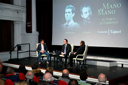 Y es que el toro y el flamenco ya han servido de habitual hilo conductor de estos encuentros que, en su última edición, salvaron el frío meteorológico con su contrastado poder de convocatoria, llenando el Teatro Cajasol. La admiración de Ginés Marín por la trayectoria de El Potito, de alguna manera, fue el germen de este nuevo encuentro que suponía la octava ocasión en la que se fusionaban ambas artes sobre el escenario de la Fundación Cajasol.