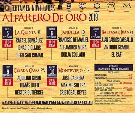 Presentados los Carteles del "XX CERTAMEN DE NOVILLADAS ALFARERO DE ORO" Feria Taurina 2019 Villaseca de la Sagra