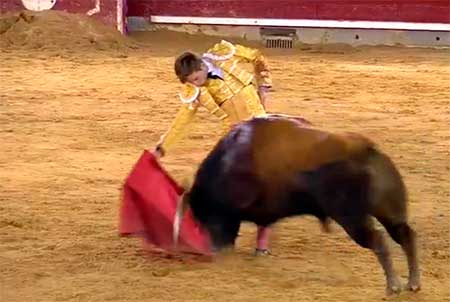 El tercero fue un buen novillo con el que San Román demostró que, además de valor, posee un concepto extraordinario. Lo exhibió sobre todo en el toreo al natural, jugando muy bien con los vuelos de la muleta para enganchar y torear en su acepción más grandilocuente al de Encinagrande, al que cortó una oreja.
