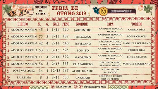 06 Octubre 2019Madrid. Curro Díaz, López-Chaves y Manuel Escribano, en el cartel de esta tarde.