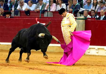 Y si noble y fácil fue el primer toro de la tarde, aún lo fue más el cuarto, que no le planteó ni uno solo problema mientras le pasaba de muleta de manera despegada y ligera, en un trasteo dilatado y vistoso, de fácil consumo, que el de Chiva remató con pases en redondo de alardeada maestría.