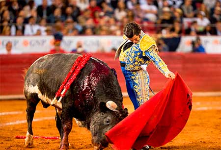 Al tener frente a él un toro parado y soso, no hizo lo que acostumbra: matarlo y cortar por lo sano, sino que lo llevó por alto, con muletazos de mano baja por el lado derecho con intermitencia pero que le valieron los jaleos del público, mismo que aplaudió el que abreviara la faena y matara de pinchazo y entera fulminante para sellar su primera actuación de la tarde.