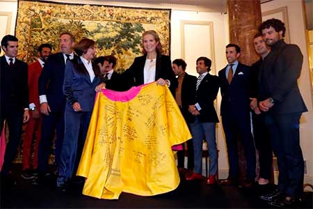 La infanta ha reconocido que es "un honor" recibir este capote, sobre todo porque proviene "de la familia taurina", de la cual se considera parte gracias, sobre todo, a la afición que desde pequeña le inculcó su padre y su abuela, los grandes referentes de amor por lo taurino provenientes de la Casa Real.