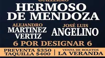 De la atractiva combinación es oportuno destacar los triunfos que recientemente ha tenido el rejoneador Guillermo Hermoso de Mendoza, quien cortó dos orejas en Villa Hidalgo, Jalisco, en el comienzo de su presente temporada, para después tener un triunfo arrollador a su paso por Ayutla, donde salió a hombros tras el corte de 4 orejas y un rabo. Para Guillermo, continuar con la leyenda de su padre, Pablo Hermoso, se convierte en reto personal en el que busca su propio concepto.