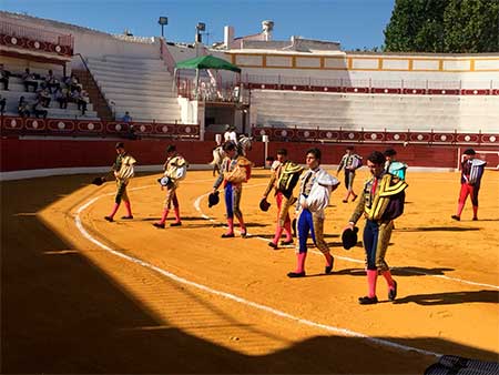 Salvi García, de la Escuela Taurina Linense se la vio con exigente cuarto al que muleteó con decoro ante tanto picante. José Antonio de los Reyes, de la Escuela de Chiclana, fue ovacionado tras una faena con aires agitanados.