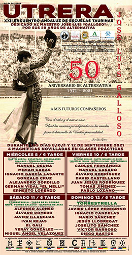 La nueva cita será en la localidad sevillana de Utrera haciéndolo coincidir con sus días de “Fiestas locales en Honor a la Virgen de Consolación” aunque a pesar de la mejora en la situación sanitaría derivada por la pandemia del coronavirus la ciudad no celebrará la tradicional Feria. “La XXII Edición rendirá homenaje al maestro José Luis Feria Fernández ‘José Luis Galloso’ al cumplirse esta temporada el 50 Aniversario de su Alternativa”, señaló Ordóñez.