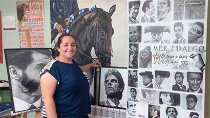 Quiero hablaros de una mujer joven, valiente, taurina, muy taurina, que con solo tres lapiceros, un lienzo y todo su talento es capaz de dar vida a todo lo que dibuja. El realismo de su obra es tan perfecto que ni acercándote se es capaz de diferenciar si estás mirando una fotografía o un dibujo. Imágenes que te llevan a adentrarte en ellas, donde se pueden preciar todos y cada uno de los rasgos de cada torero, sus arrugas, cornadas, hasta el miedo se puede apreciar en sus ojos, esto solo está al alcance de los grandes artistas.