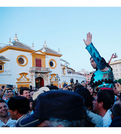 27 Abril 2023Sevilla. Morante de la Puebla ha hecho historia esta tarde en la Real Maestranza sevillana al cortar dos orejas y rabo del cuarto toro, el mejor de la corrida de Domingo Hernández que le permitió sacar lo mejor de su toreo en una obra cumbre tanto con el capote como con la muleta. Fue el toro perfecto para despertar al Morante más artista, que crujió los cimientos de la plaza con una actuación desgarradoramente bella que queda para los anales de esta plaza. Fue la gran faena de una tarde que tuvo otros contenidos interesantes y de calidad de la mano tanto de Juan Ortega -para quien sonó la música con el capote en su primero- como para Urdiales, que sacó a relucir la calidad de su toreo en el último toro de su feria. Pero el acontecimiento del día y de la feria llevó el nombre de Morante, que al caer la tarde atravesó la Puerta del Príncipe y colapsó las calles del centro en su paseo a hombros de los aficionados hasta el hotel.