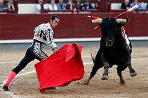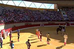 Cumbre de Ventura en la lluviosa corrida de San Fernando de Aranjuez (Madrid)Aranjuez (Madrid) Dos toros para rejones de María Guiomar Cortés de Moura, nobles y buenos, y cuatro en lidia ordinaria de Torrealta, desiguales de presentación y juego. Destacó el lote conformado por segundo y quinto. Blandos, sin raza y deslucidos, tercero y sexto. La plaza registró menos de media entrada en tarde lluviosa. |