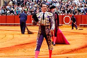 Pepe Moral corta dos orejas en el mano a mano de MiuraSevilla. Se lidiaron toros de Miura, bien presentados. Destacaron segundo y cuarto en una corrida que tuvo cuatro toros manejables. |