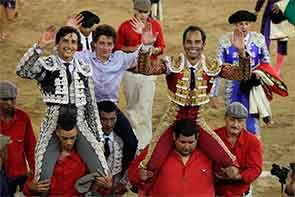 Cierre de lujo en la feria de Cali: ocho orejas y notable encierro de CaicedoCali (Col 31 dcbre) Seis toros de la ganadería Juan Bernardo Caicedo, bien presentados y de comportamiento notable. Se le dio la vuelta al ruedo al cuarto de la corrida, mientras la mayoría de sus hermanos fueron aplaudidos en el arrastre. |