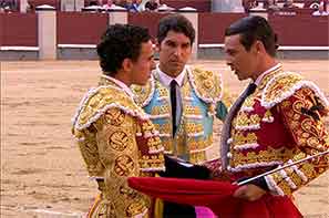 Juan Bautista abre la puerta de Los ConsulesNimes (Francia) Coliseo Romano de Nimes. Lleno absoluto. Cuarta de la Feria de Pentecostés. Se lidiaron toros de La Quinta, Parladé, Jandilla, Pedraza de Yeltes, Carmen Lorenzo y Garcigrande. Salieron los sobreros de Pedraza de Yeltes y de Garcigrande. |