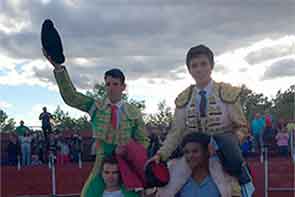 Gran triunfo de Juan Carlos Benítez indulta un novillo en Talamanca del JaramaTalamanca del Jarama (Madrid). Se han lidiado 4 novillos de Angel Luis Peña, que han dado muy buen juego, tanto es así, que el cuarto ha sido indultado, y al primero y segundo, se la han dado la vuelta al ruedo. Tarde de nubes y claros. Tres cuartos de plaza. Los dos novilleros han salido a hombros. |
