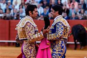 Los hermanos Rivera Ordóñez triunfan en el adiós de Francisco a la MaestranzaSevilla. Seis toros de Daniel Ruiz, de escasa presencia, con una mayoría de astados terciados y vareados, y casi todos de poca raza y fuerzas. Destacó por su entregada bravura el cuarto de la tarde, ovacionado en el arrastre. Octava corrida de abono de la feria de Abril de Sevilla, con lleno en los tendidos (más de 12.000 personas), en tarde primaveral. |