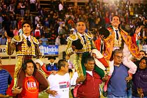 Joselito y Roca Rey aplaudidos en Queretaro (Méx)Querétaro, (Méx 20 enero) Plaza "Santa María". Tercera corrida de la temporada. Poco más de tres cuartos de entrada en noche fresca, sin viento. Toros de Barralva, disparejos en presentación (el 4o. y 5o., protestados y devueltos por su falta de trapío), variados en comportamiento, de los que destacaron 1o. y 3o. por su nobleza. |