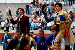 Puerta Grande para Diego Ventura y Álvaro Lorenzo en PontevedraPontevedra. exto.Dos toros para rejones de los herederos de Ángel Sánchez y Sánchez, nobles y colaboradores, y cuatro en lidia ordinaria de Torrehandilla, aceptablemente presentados, dóciles y mansurrones. La plaza registró más de media entrada en los tendidos. |
