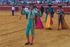 Talavante corta una oreja y Borja Jiménez deja buena impresión en El PuertoEl Puerto (Cádiz) Tercer festejo de la temporada taurina 2016 en El Puerto. Con algo más de media plaza y con viento de levante que molestó mucho a los toreros, se han lidiado toros de Santiago Domecq, desiguales de presentación y de mal juego en general. El que saltó al ruedo en tercer lugar fue un novillo que se le “coló” a las autoridades en el reconocimiento. |