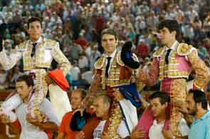 La terna de rejoneadores salen a hombros en una tarde triunfalista en VitoriaVitoria. Seis toros de Luis Terrón, pobres de presentación y descastados, salvo el quinto y el sexto, que fueron buenos. La plaza registró más de un tercio de entrada. |