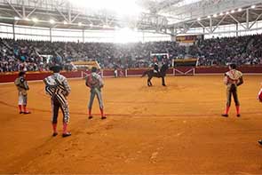 El rejoneador Diego Ventura: Ovación y dos orejas. Enrique Ponce (rosa y oro): Silencio y dos orejas. Leo Valadez (azul pavo y oro): Silencio y oreja.