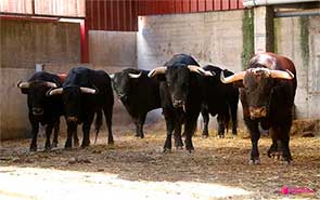Zaragoza. Toros de la ganadería de Adolfo Martín que esta tarde serán lidiados en la plaza de toros de Zaragoza en la segunda corrida de la Feria del Pilar, por una terna compuesta por Alberto Álvarez, Manuel Escribano y Daniel Luque.
