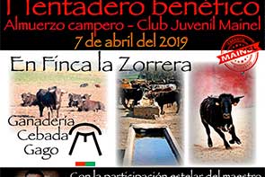 Tentadero benéfico en "La Zorrera" con Victor Puerto03 Abril 2019Jerez (Cádz) El Club Juvenil Mainel de Jerez de laFrontera organiza su primer tentadero benéfico en la finca “La Zorrera” de la ganadería de Hdros. de Cebada Gago en Medina Sidonia ,y contará con la participación del matador Victor Puerto.