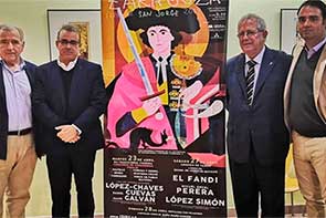 Zaragoza con carteles para San Jorge30 Marzo 2019Zaragoza. La Sala Cultural de la plaza de toros de Zaragoza ha albergado esta tarde la presentación de la Feria de San Jorge 2019, que estará compuesta por dos corridas de toros (una de ellas concurso de ganaderías) y una novillada con picadores, que se celebrarán los días 23, 27 y 28 del próximo mes de abril. |