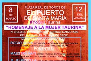 "Homenaje a la mujer taurina" en El Puerto05 Marzo 2020El Puerto (Cádiz) Será el próximo domingo dia 8 a las doce de la mañana en la Plaza Real de El Puerto de Santa Maria.