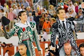 José Antonio "Morante de la Puebla", de celeste y azabache: estocada (oreja); pinchazo (silencio).José María Manzanares, de aguamarina y azabache: estocada (silencio); estocada (dos orejas).Fortes, de verde, oro y cabos blancos: pinchazo y estocada caída(oreja), estocada (oreja).